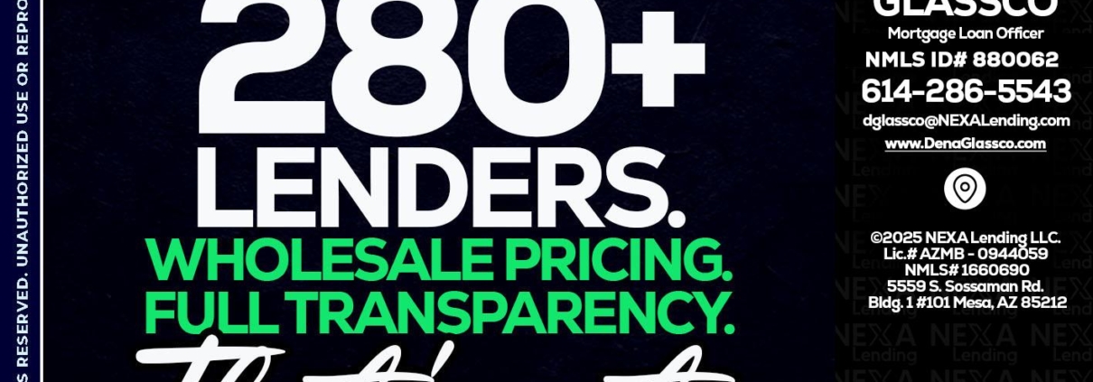 280+ LENDERS - Dena Glassco -Residential, Commercial, International Loan OfficerHi, my name is Dena Glassco. I’m a Loan Officer with NEXA Mortgage LLC., offering personalized mortgage solutions, fast customized quotes, great rates and service with integrity.