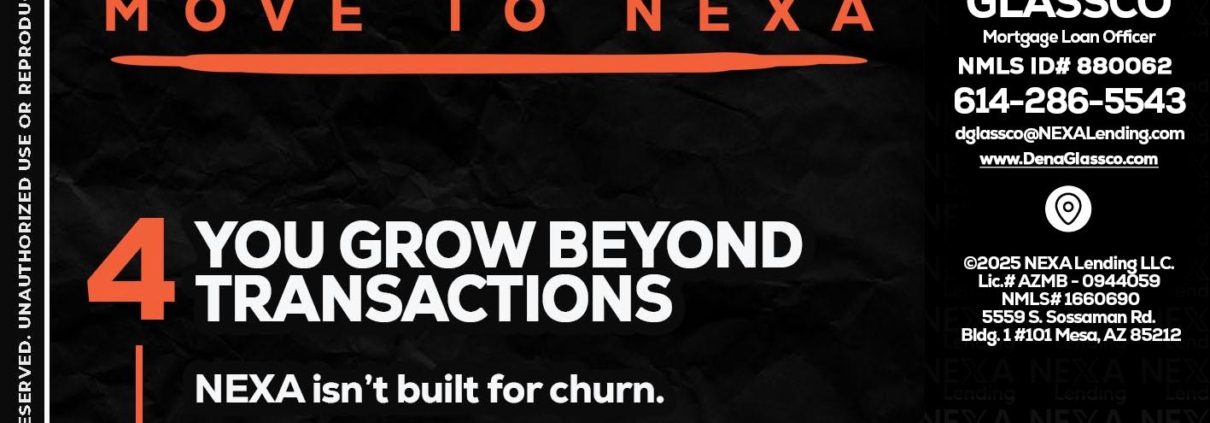 Hi, my name is Dena Glassco. I’m a Loan Officer with NEXA Lending LLC., offering personalized mortgage solutions, fast customized quotes, great rates and service with integrity.