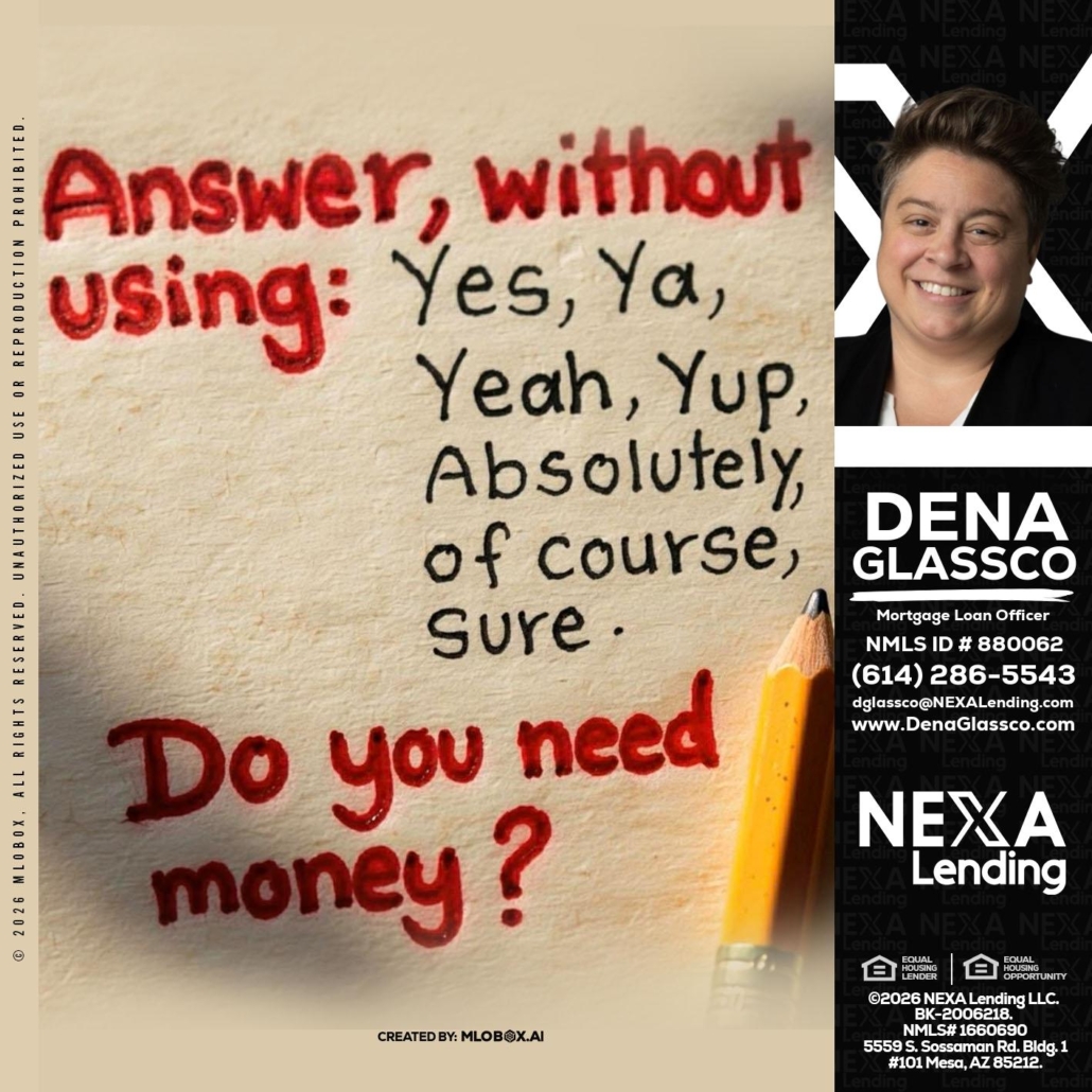 Hi, my name is Dena Glassco. I’m a Loan Officer with NEXA Lending LLC., offering personalized mortgage solutions, fast customized quotes, great rates and service with integrity.