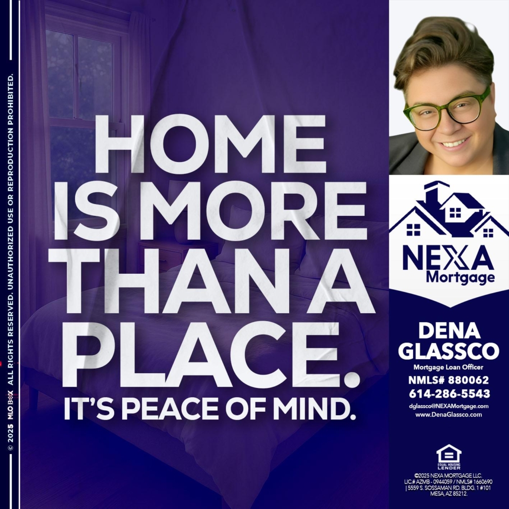 Hi, my name is Dena Glassco. I’m a Loan Officer with NEXA Mortgage LLC., offering personalized mortgage solutions, fast customized quotes, great rates and service with integrity.