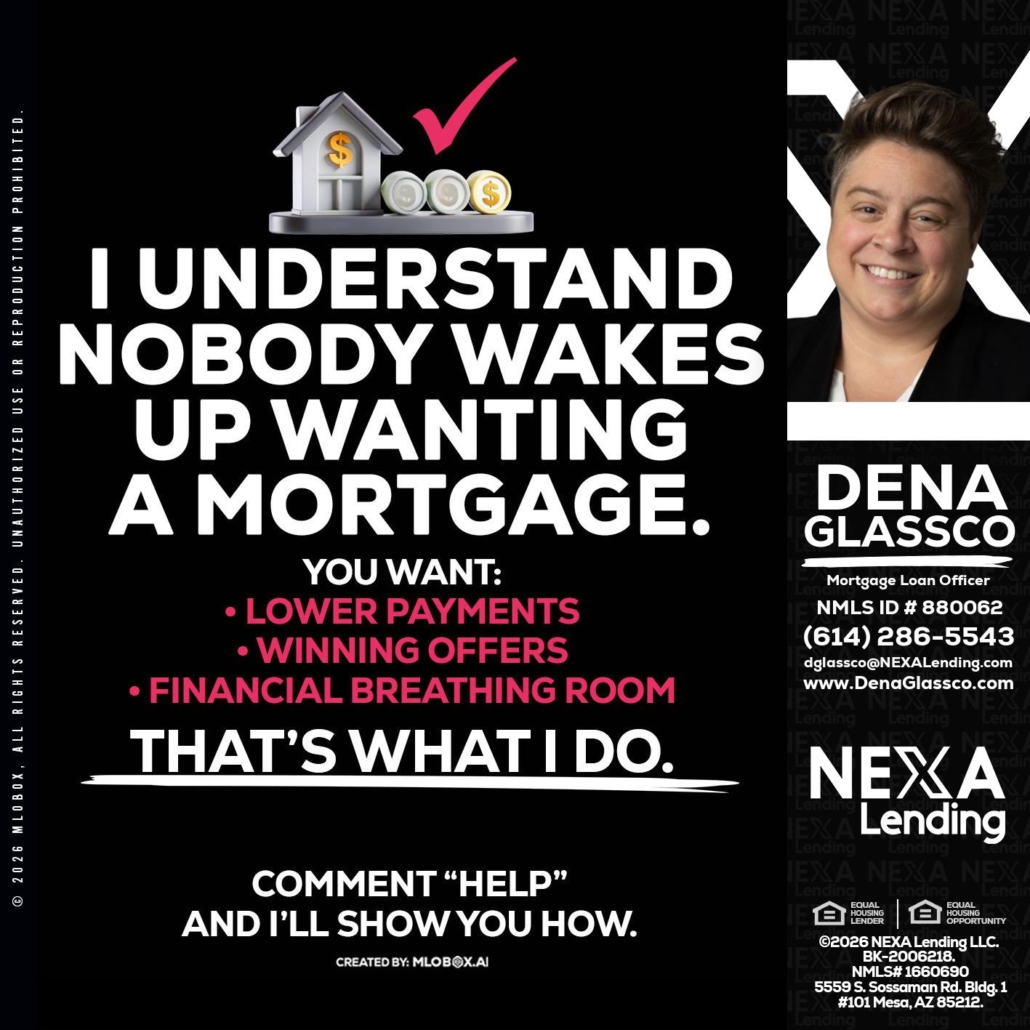 Hi, my name is Dena Glassco. I’m a Loan Officer with NEXA Lending LLC., offering personalized mortgage solutions, fast customized quotes, great rates and service with integrity.
