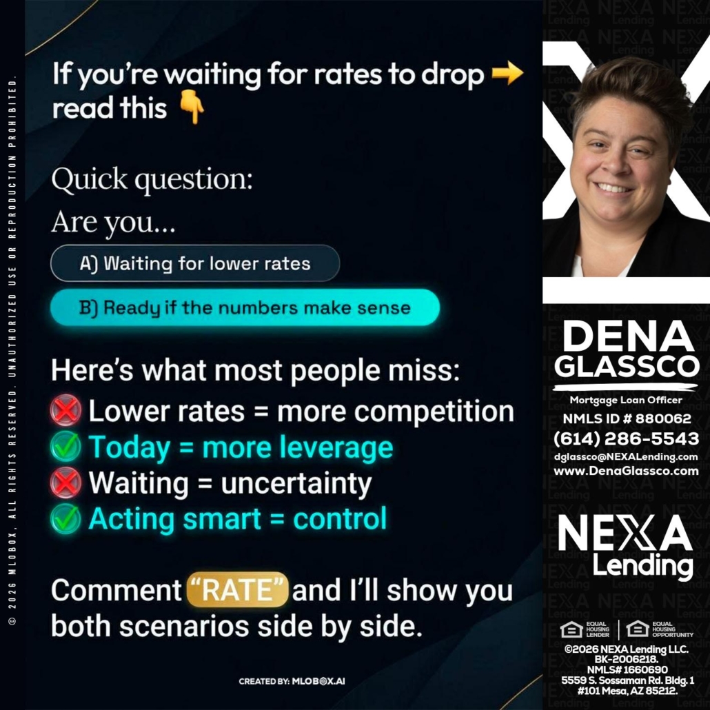 Hi, my name is Dena Glassco. I’m a Loan Officer with NEXA Lending LLC., offering personalized mortgage solutions, fast customized quotes, great rates and service with integrity.