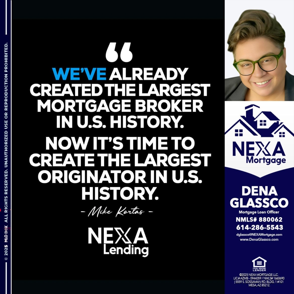 Hi, my name is Dena Glassco. I’m a Loan Officer with NEXA Mortgage LLC., offering personalized mortgage solutions, fast customized quotes, great rates and service with integrity.