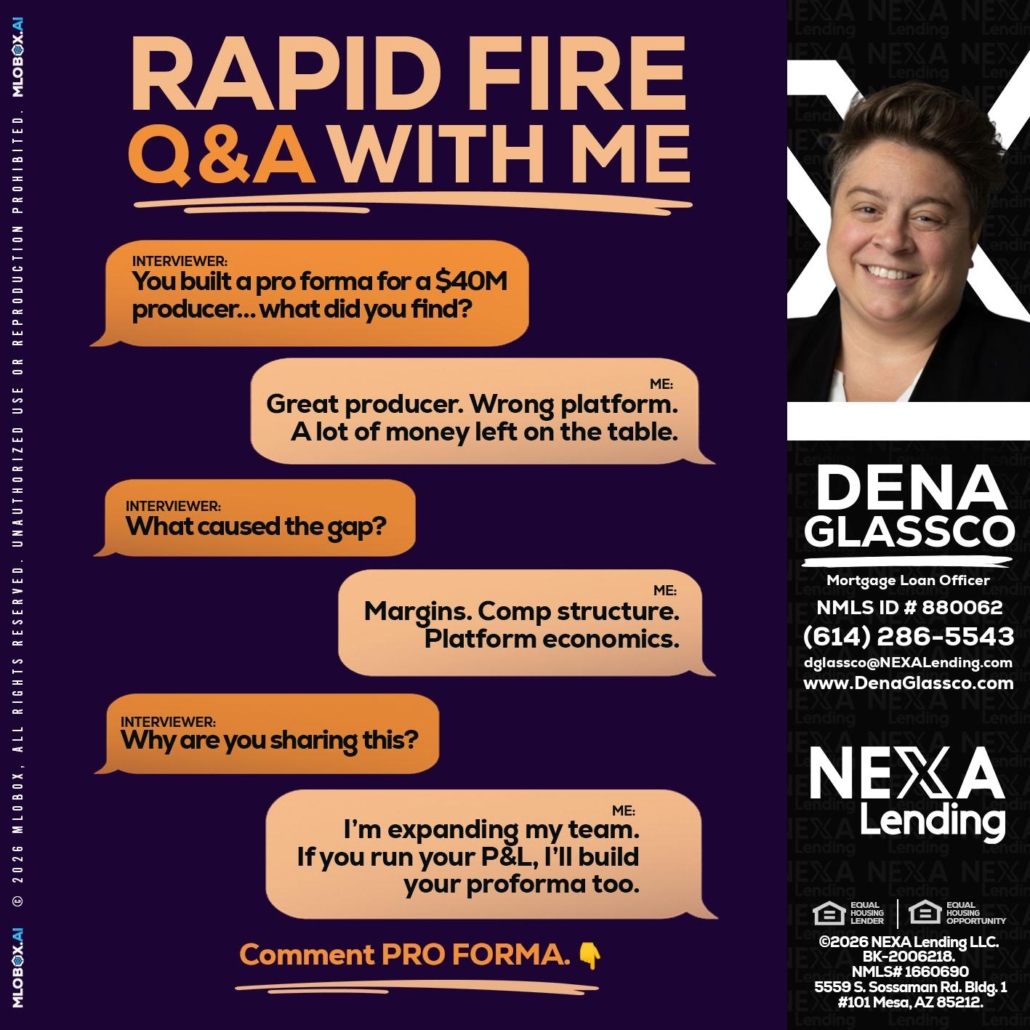 RAPID FIRE - Dena Glassco -Residential, Commercial, International Loan OfficerHi, my name is Dena Glassco. I’m a Loan Officer with NEXA Lending LLC., offering personalized mortgage solutions, fast customized quotes, great rates and service with integrity.