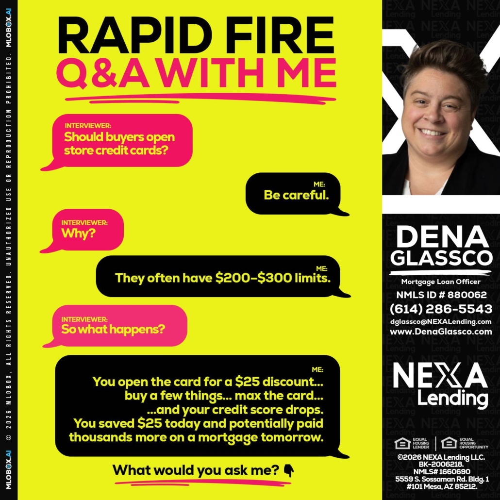 Hi, my name is Dena Glassco. I’m a Loan Officer with NEXA Lending LLC., offering personalized mortgage solutions, fast customized quotes, great rates and service with integrity.