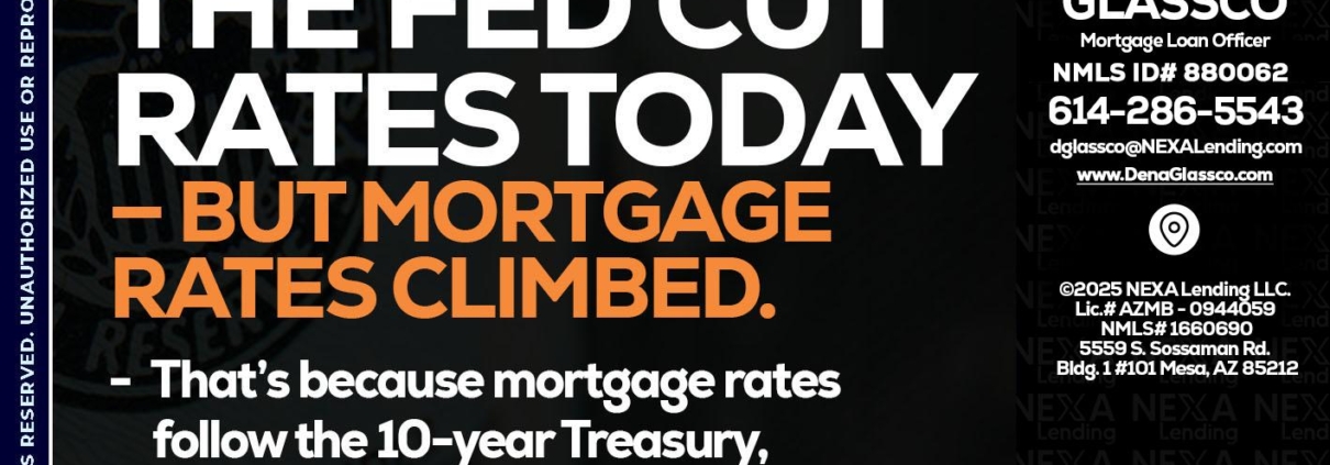 THE FED CUT - Dena Glassco -Residential, Commercial, International Loan OfficerHi, my name is Dena Glassco. I’m a Loan Officer with NEXA Lending LLC., offering personalized mortgage solutions, fast customized quotes, great rates and service with integrity.