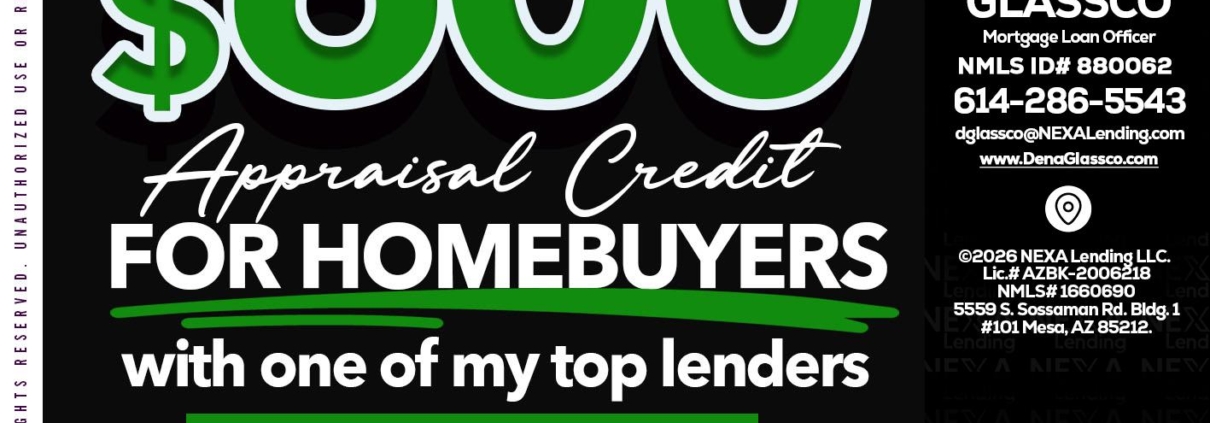 up to $600 - Dena Glassco -Residential, Commercial, International Loan OfficerHi, my name is Dena Glassco. I’m a Loan Officer with NEXA Lending LLC., offering personalized mortgage solutions, fast customized quotes, great rates and service with integrity.