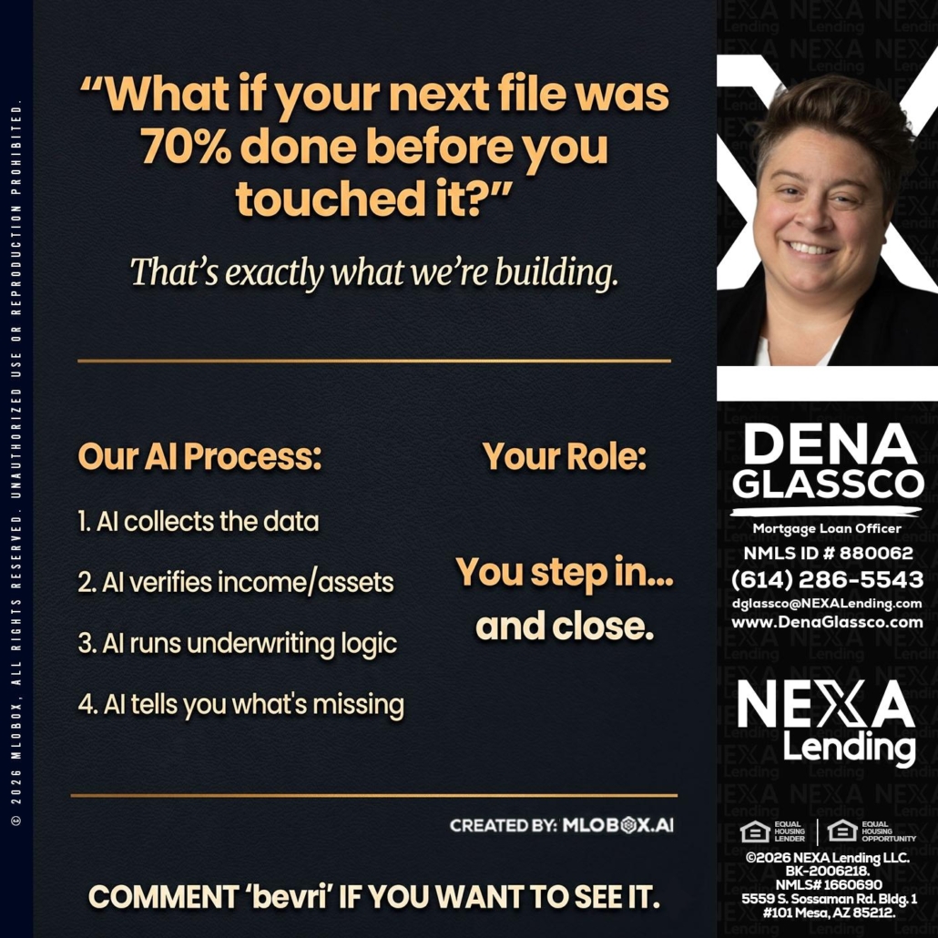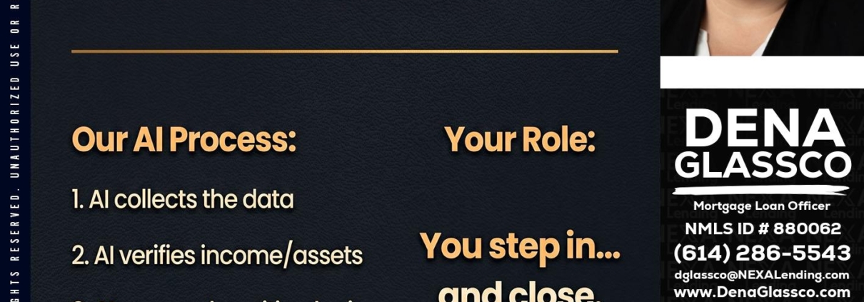Hi, my name is Dena Glassco. I’m a Loan Officer with NEXA Lending LLC., offering personalized mortgage solutions, fast customized quotes, great rates and service with integrity.
